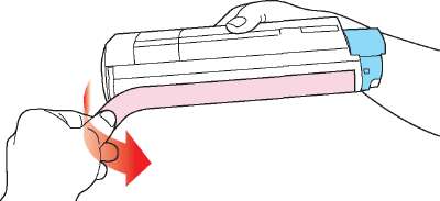 Приподнимите правый край и потяните его вправо для освобождения левого края, как показано на рисунке. Извлеките из принтера.