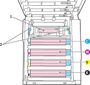 Транспортный ремень находится под четырьмя печатными барабанами. Этот блок требует замены примерно после каждых 50.000 страниц.