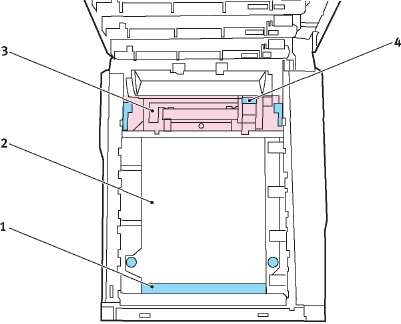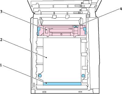 Для получения доступа к пути прохода бумаги необходимо удалить все четыре печатных барабана.