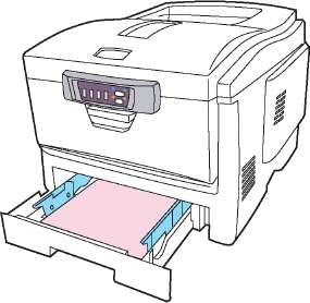12. Выдвиньте лоток для бумаги и убедитесь в том, что бумага сложена в нем должным образом, не имеет повреждений и направляющие бумаги находятся в правильном положении относительно краев листа. После завершения проверки задвиньте лоток на место.