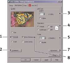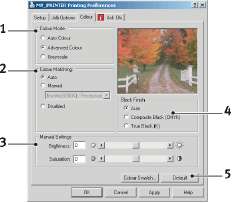 Настройки драйвера принтера можно задавать из окна Printers (Принтеры) операционной системы Windows (в Windows XP это окно называется "Printers and Faxes") или из прикладной программы Windows. Настройки драйвера, выполненные в Windows, в основном являются настройками по умолчанию и хранятся в памяти между сеансами работы в Windows. В прикладных программах Windows задаются настройки, необходимые для конкретного задания печати. В обоих случаях вы можете сохранить определенные наборы настроек и дать им имя (во вкладке Setup (Настройка)), чтобы использовать эти наборы в дальнейшем.