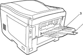 Для печати лицевой стороной вверх убедитесь, что накопитель бумаги лицевой стороной вверх (задний) (3) открыт, и поддержка для бумаги (4) выдвинута. Бумага накапливается в обратном порядке, а емкость накопителя составляет около 100 листов, в зависимости от плотности бумаги.