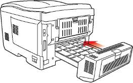 Устройство двусторонней печати вставляется прямо в заднюю часть принтера и не требует специальных инструментов для установки.
