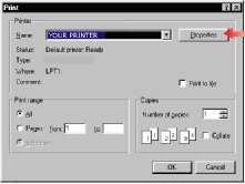 Когда вы выбираете печать из прикладной программы Windows, на экране появляется диалоговое окно печати. В нем обычно указывается имя принтера, на котором будет отпечатан документ. Рядом с именем принтера есть кнопка Properties (Свойства).