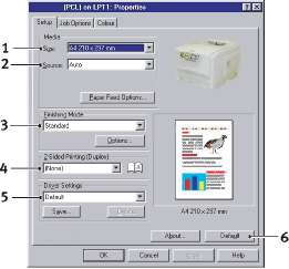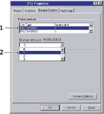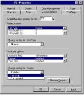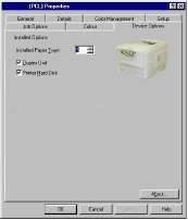 Для обоих драйверов - если в принтере установлено дополнительное устройство, в частности, жесткий диск или устройство двусторонней печати, убедитесь в том, что они активизированы в диалоговом окне Start/ Settings/Printers/Properties/Device options (Пуск/Настройки/Принтеры/ Свойства/Опции устройства).