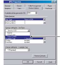 1. Во вкладке "Device Options (Опции устройства)" окна драйвера принтера выберите "Store to HDD (Сохранить на жестком диске)" (1).