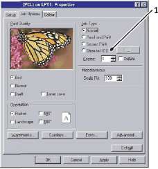 Выберите требуемое число копий из прикладной программы и щелкните по кнопке Properties (Свойства).