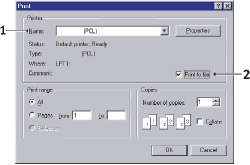 Выберите опцию Print To File (Печатать в файл) (2).