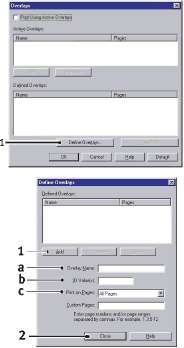 4. В окне надпечаток щелкните по кнопке Define Overlays (Определить надпечатки) (1).