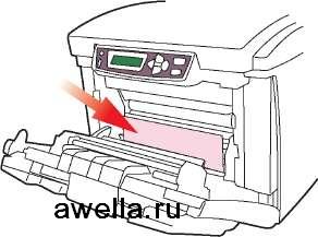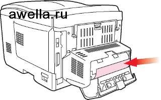 Если лист почти полностью вошел в печку (виден только короткий край листа), то не пытайтесь вытянуть его обратно. Выполните следующий шаг для удаления листа из задней части принтера.