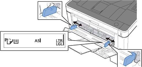 При наличии зазора между бумагой и направляющими ширины повторно отрегулируйте направляющие ширины, чтобы избежать неровной подачи листов и замятия бумаги.