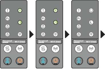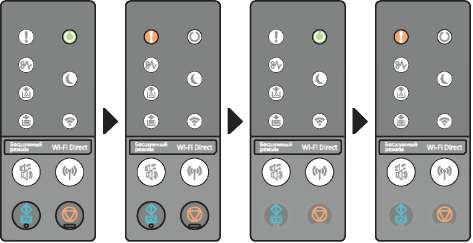 Для печати страницы состояния нажмите клавишу [GO] и удерживайте ее нажатой в течение 3—9 секунд. Когда аппарат готов к печати отчета, индикатор мигает следующим образом.