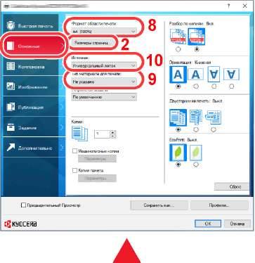 Экран настроек печати в драйвере принтера
