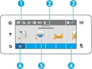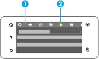 Прокрутите меню по горизонтали, чтобы просмотреть доступные значки. Нажмите значок, чтобы открыть экран состояния или изменить параметры устройства.