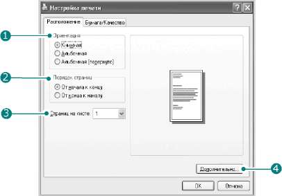 Если доступ к свойствам принтера осуществляется через папку Принтеры, появляются дополнительные вкладки свойств Windows; см. руководство пользователя Windows.