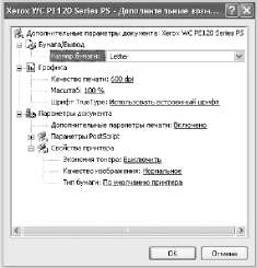 Использование функций принтера, поддерживаемых драйвером PostScript