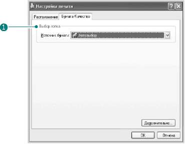 Параметры на вкладке Бумага/Качество позволяют выбрать лоток, используемый для задания на печать.