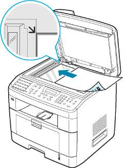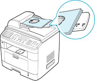 Отправляемый по факсу документ можно загрузить в автоподатчик или поместить на стекло экспонирования. В автоподатчик можно одновременно загрузить до 50 листов бумаги плотностью 75 г/м2. На стекло экспонирования можно поместить только один лист.