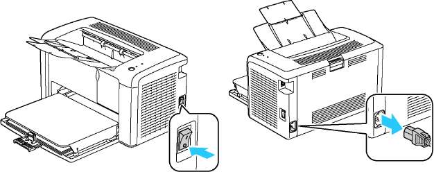 1. Выключите принтер и отсоедините шнур питания от разъема на задней панели аппарата.