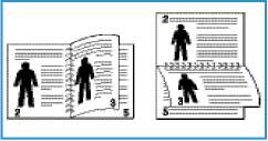 • Reverse Duplex Printing (Двусторонняя печать с поворотом): документ печатается на двух сторонах листа, изображение на второй стороне разворачивается на 180 градусов.