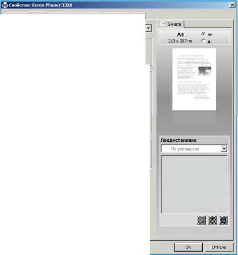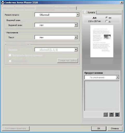 • Paper Type (Тип бумаги): выбор типа бумаги. Варианты, доступные в списке: по умолчанию, обычная и плотная.