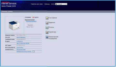 Интернет-службы CentreWare IS для принтера Xerox Phaser 3320