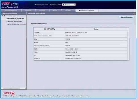 Кроме того здесь предоставлены ссылки на веб-сайт Xerox, где можно загрузить драйверы принтера и Руководства пользователя, заказать расходные материалы, получить доступ к технической поддержки зарегистрировать аппарат.