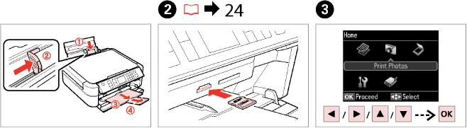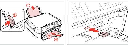 Загрузите простую бумагу формата A4. Вставьте карту памяти.