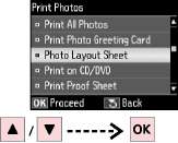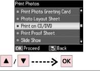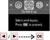Для печати обложки CD/DVD в меню Home выберите пункт Печать фото, Лист макета фото и макет Верхн. Jewel (для обложки) или Jewel индекс (для списка треков).