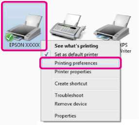 Щелкните правой кнопкой значок вашего принтера, затем щелкните Printing preferences (Свойства принтера).