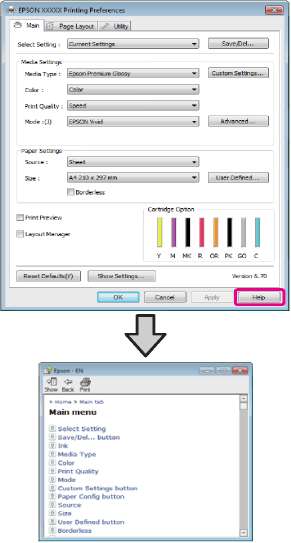 Справку по драйверу принтера можно открыть следующими способами: