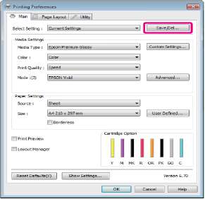 Вы можете сохранять параметры и настраивать интерфейс драйвера принтера.