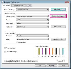 Настройте параметры в области Media Settings (Настройки носителя) на вкладке Main (Главная).