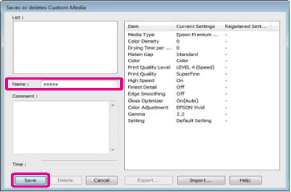 Вы можете сохранить до 100 пользовательских настроек. Вы можете выбрать зарегестрированные настройки из списка Media Type (Тип носителя).