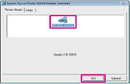 Выберите Epson Stylus Photo R2000 Printer Uninstall и щелкните Uninstall/Change (Удалить/Изменить) (или Change/Remove (Изменить удалить)/add or remove (добавить или удалить)).