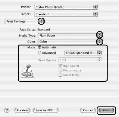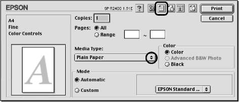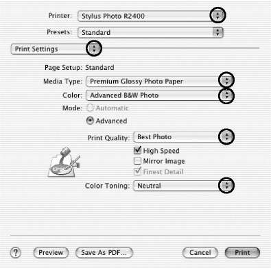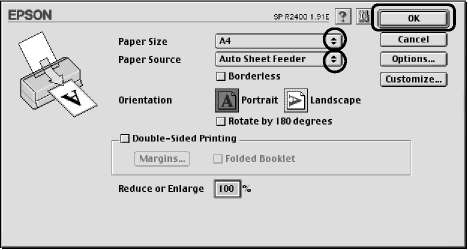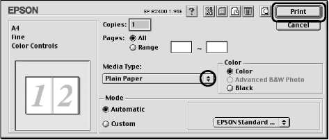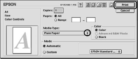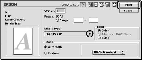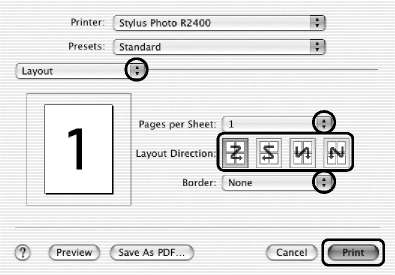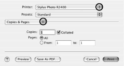 6. Для параметра Printer (Принтер) выберите Stylus Photo R2400 и настройте параметр Copies & Pages (Копии и страницы).