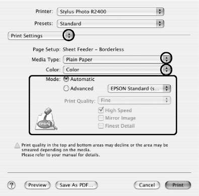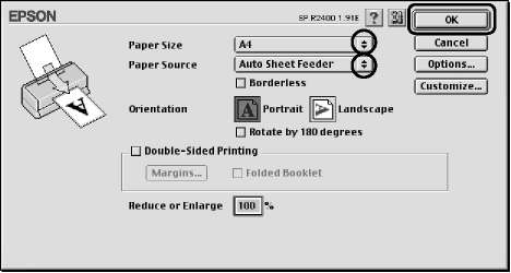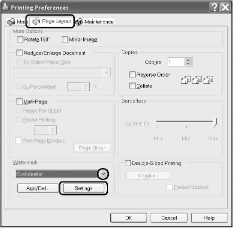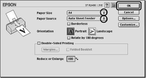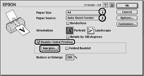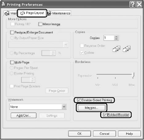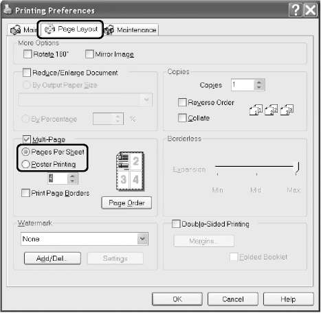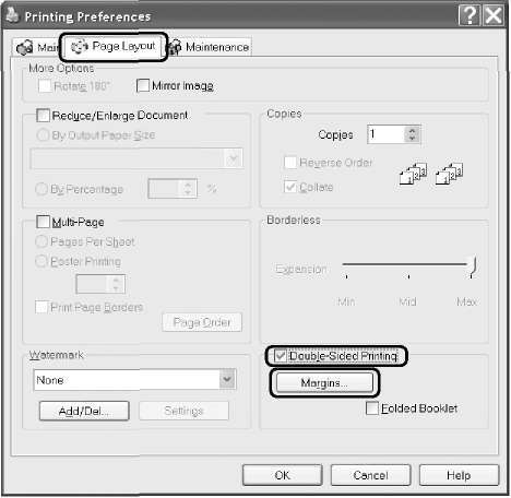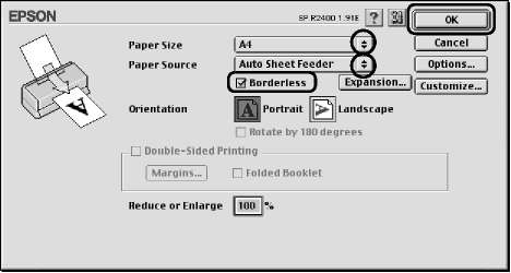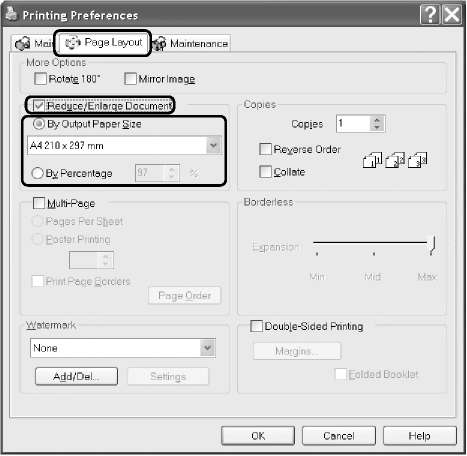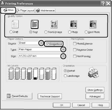 Эта функция недоступна, если на вкладке Main (Главная, в Windows) или в диалоговом окне Page Setup (Параметры страницы, в Mac OS 9) установлен флажок Borderless (Без полей).