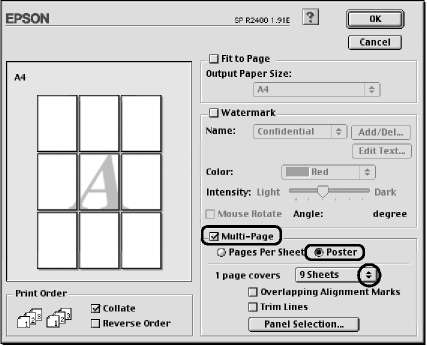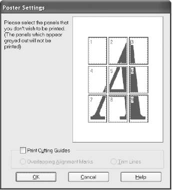 Если необходимо напечатать только некоторые фрагменты плаката, щелкните Panel Selection (Выбор панелей), выберите фрагменты, которые не нужно печатать, и щелкните OK.