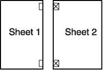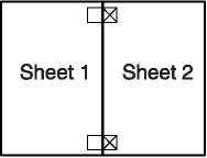 2. Совместите край первого листа с верхним краем второго листа, выровняйте метки пересечения, затем временно соедините эти два листа липкой лентой с обратной стороны.
