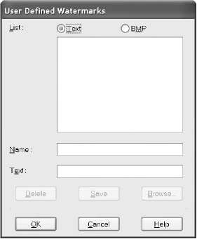 1. На вкладке Page Layout (Макет) щелкните кнопку Add/Del (Добавить/Удалить) под списком Watermark (Водяной знак). Откроется следующее диалоговое окно.