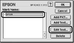 3. Имя файла или текст водяного знака появится в списке Mark Name (Название водяного знака) в диалоговом окне Watermark (Водяной знак). Чтобы изменить имя изображения водяного знака, выберите его в списке и введите новое имя. Выбрав водяной знак в списке Name (Название), можно отредактировать текст или изменить шрифт и стиль текста, щелкнув кнопку Edit Text (Редактирование текста).