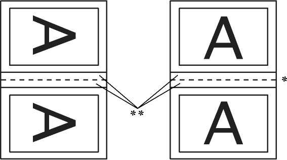 Ниже описано, как создать плакат, если для параметра Poster Printing (Печать плаката) выбрано значение 2x2, а для параметра Print Cutting Guides (Печатать линии обреза) — значение Overlapping Alignment Marks (Перекрытие меток приведения).