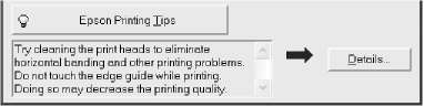 В текстовом поле в нижней части окна индикатора выполнения отображаются советы, как наиболее эффективно использовать программное обеспечение принтера Epson. Каждые 30 секунд выводится новый совет. Чтобы узнать подробности по теме совета, щелкните кнопку Details (Подробно).