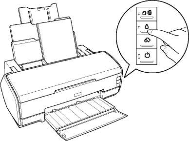 Принтер начнет прочистку печатающей головки, во время которой индикатор P питания будет мигать.