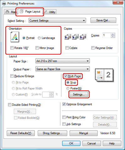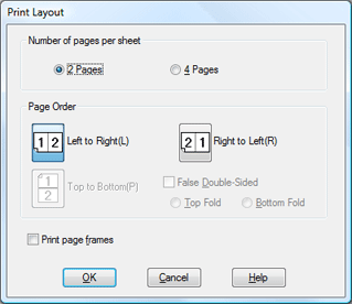 Щелкните Settings (Настройки), чтобы открыть диалоговое окно Print Layout (Макет). В окне Print Layout (Макет печати) определите порядок, в котором будут напечатаны страницы. Чтобы напечатать рамки вокруг страниц на каждом листе, устновите флажок Print page frames (Печатать рамки страниц)