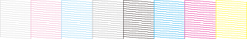 Если фрагменты линий на странице проверки не пропечатались, как показано на иллюстрации ниже, это означает, что забились дюзы или не откалибрована печатающая головка.
