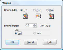 Для параметра Unit (Единицы измерения) выберите cm (см) или inch (дюймы). Затем укажите ширину переплета. Введите значение ширины переплета в диапазоне от 0,3 до 3,0 см (от 0,12 до 1,18 дюймов).