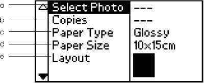 1. Загрузите в принтер бумагу и вставьте карту памяти, содержащую данные DPOF. После загрузки карты памяти для параметра Select Photo (Выбор фото) будет установлено значение DPOF. Для выхода из режима DPOF, выберите другое значение для параметра Select Photo (Выбор фото).