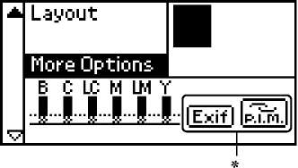 информацией PRINT Image Matching или Exif Print и для параметра Select Photo выбрано значение АН (Все), Range (Диапазон), Photo number (Номер фото) или Individual (Выборочно), появляются значки Exif и P.I.M..