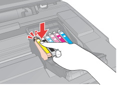 Кнопками выберите Maintenance (Сервис) и нажмите на кнопку OK. Поднимите сканирующий блок, откройте крышку отсека и нажмите на все контейнеры так, чтобы они защелкнулись на месте. Затем закройте крышку отсека и сканирующий блок. Затем нажмите на кнопку OK.